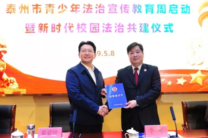 ?為深入推進青少年法治教育,強化未成年人保護工作,5月8日下午,市教育局和市檢察院在江蘇省泰州中學聯合舉辦青少年法治宣傳教育周啟動暨新時代校園法治共建儀式,市政協副主席、教育局局長奚愛國,市檢察院檢察長李軍出席儀式并講話。市檢察院副檢察長陸紅梅、鄒云翔、蔡紅衛(wèi)、檢委會專職委員華為民等參加活動。活動由市教育局副調研員朱三峰主持。 市政協副主席、教育局局長奚愛國出席儀式并講話