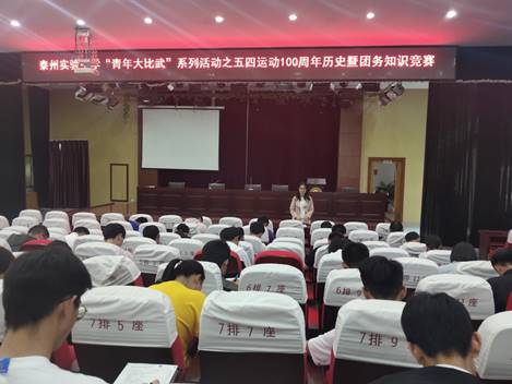 2019年5月4日,為紀念五四運動100周年,傳承百年五四精神,激勵新時代青年學生奮發向上,弘揚愛國、進步、民主、科學的精神,大力培養團員青年的理論知識和綜合能力,我校開展了青年大比武主題系列活動,展示泰州實驗中學青年學子的風采!