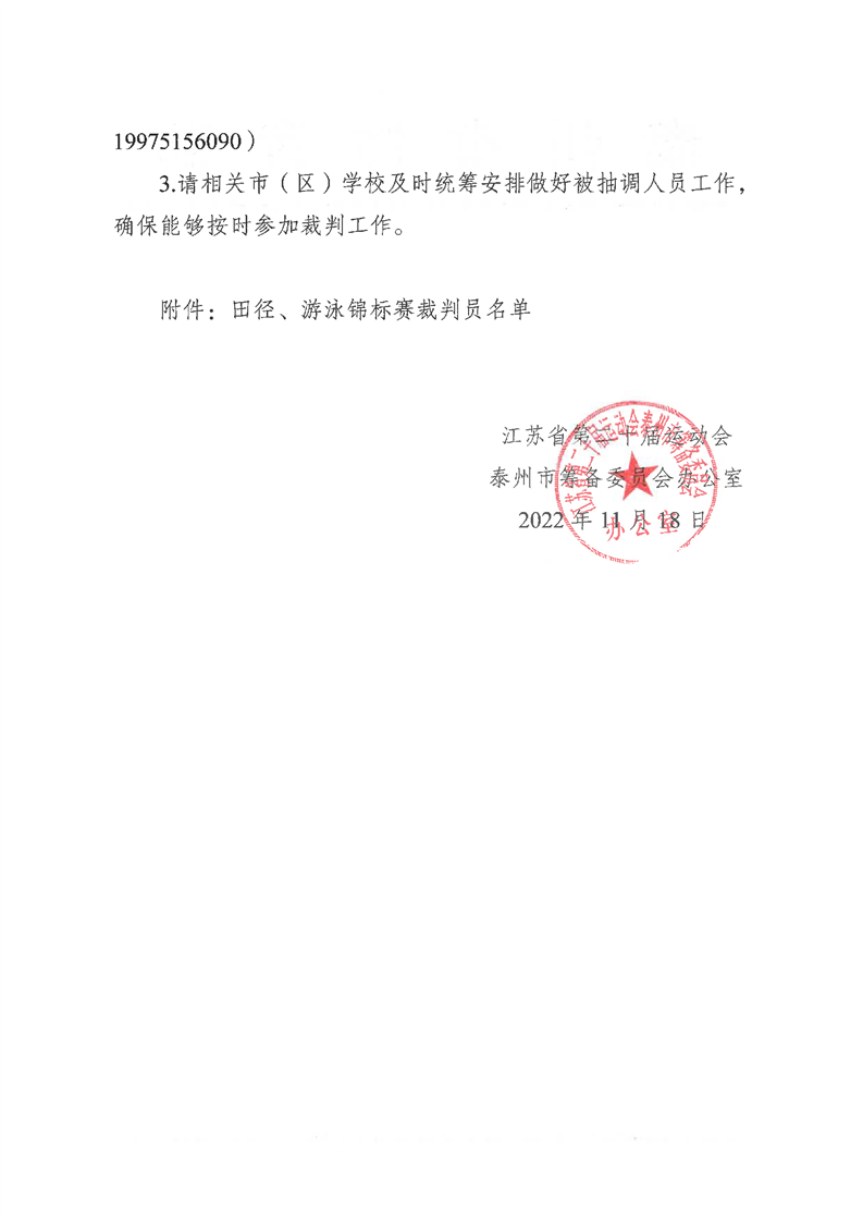 田徑、游泳裁判員抽調通知