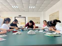 陳璟和單鑫兩位老師為學生講授香囊的制作過程并指導學生進行手工香囊的制作。劉晨老師指導學生進行常見中藥材的鑒定。