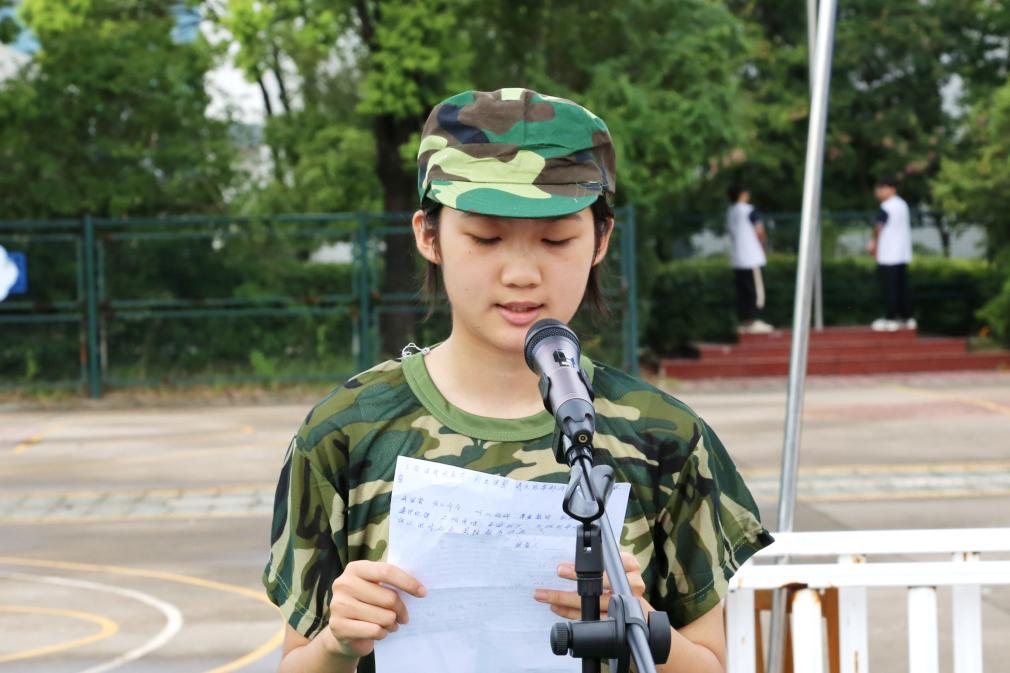 ? ? ? ?高一(1)班徐晨曦代表全體參訓同學發言,她表示,作為新時代的中學生,不僅要學好文化知識,更要具備良好的身體素質和堅定的意志力。面對身體與心靈的雙重洗禮,一定勇于迎接挑戰,發揚團結協作精神,以優異成績圓滿完成軍訓任務,成為更好的自己!