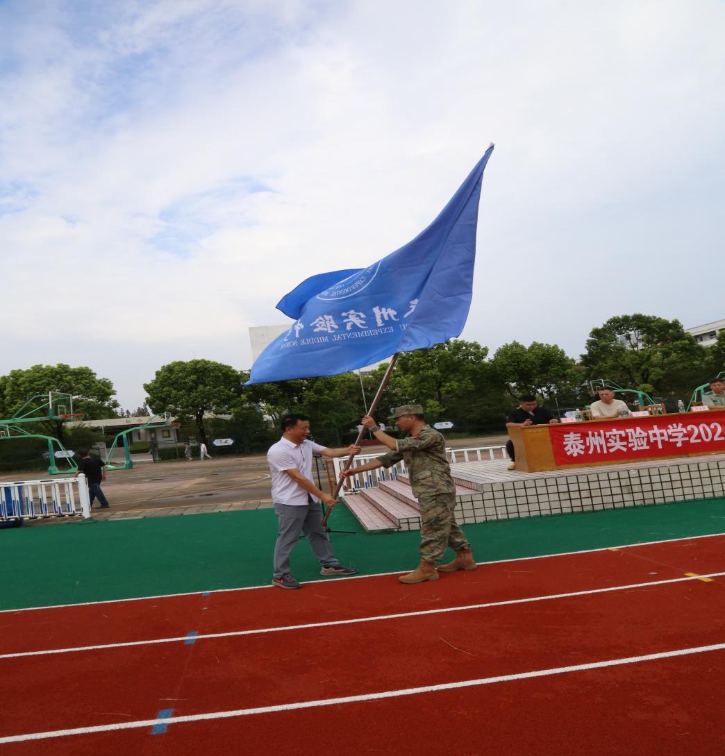 ? ? ? 卞玉年給教官代表授旗。全體軍訓教官帶領高一新生進行了列隊展示,隊列整齊,口號響亮,展示出同學們的飽滿熱情和昂揚斗志。