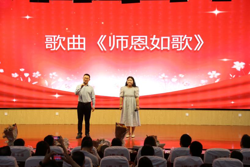 最后,兩位教師傾情獻(xiàn)唱《師恩如歌》,讓在場(chǎng)師生產(chǎn)生了心情的激蕩,情感的共鳴。
